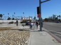 На мосту над хайвэем предстала картина почти, как в Москве во времена протестов на Болотной площади, только в миниатюре. Выяснилось, что полиция «летела» сюда, чтобы встать в оцепление вдоль Голливудского бульвара, перекрыв съезд вниз, к магистрали. Никаких митингов не было, зато столпилось несколько зевак. Им строгие стражи порядка в черном показывали рукой, чтобы, мол, не задерживались и шли дальше. Кого ждали, выяснилось через пару минут. В качестве отряда «Навального» выступили человек семь, судя по виду, студентов.