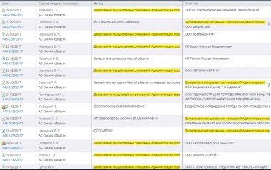 Свой уникальный контент для нашего анализа дают данные Арбитражного суда Омской области (и других инстанций арбитражной Фемиды) по делам, где стороной (истцом или ответчиком) выступает департамент ИО.