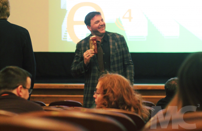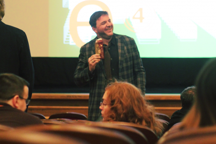 Вероятно, супруг Ксении Собчак не успел позавтракать, или перед знакомством с очередной киноработой, пусть и внеконкурсной, ему требовалась особая подпитка. Он захватил с собой плитку шоколада «Бабаевский», которую игриво продемонстрировал собравшимся, после чего развернул и начал есть.