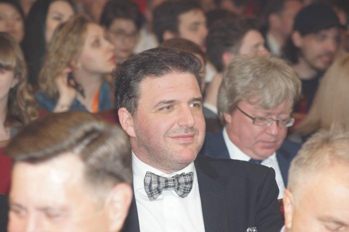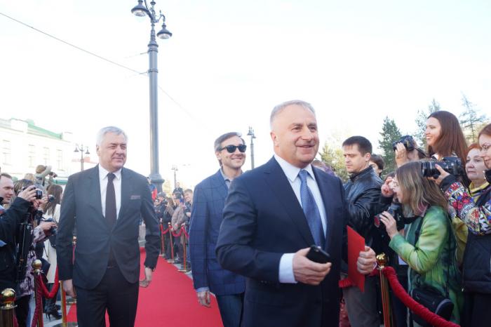 Приехавший в Омск вместо Никиты Михалкова продюсер многих его лент Леонид Верещагин предпочел щегольской бабочке традиционный деловой галстук, но красивого стального оттенка, который так изысканно выглядит с его сединой.