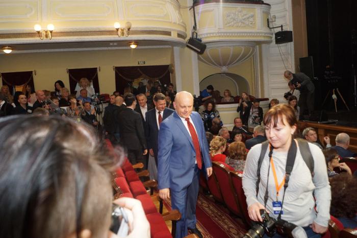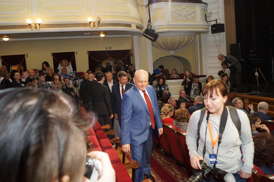 А вот глава региона Виктор Назаров, наоборот, планировал выделяться. Красивый галстук, прекрасный узор.