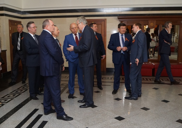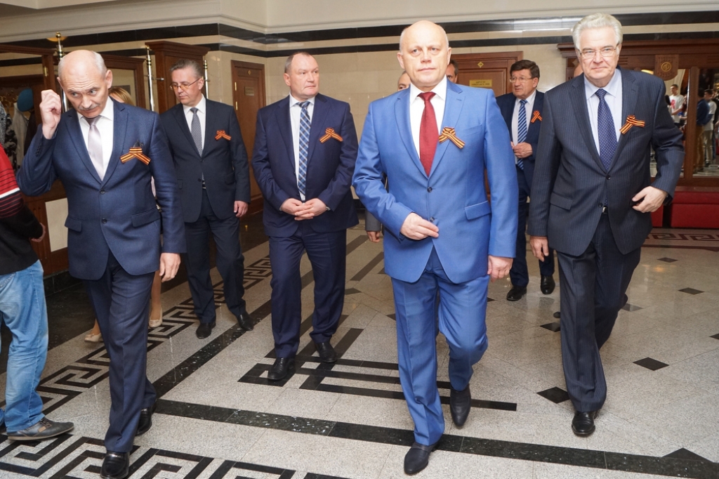 Сегодня в Концертном зале филармонии присутствовало много известных политических деятелей нашего города. Особо выделялась «группа мужчин в синем». Её «фронтменом» выступил губернатор Виктор Назаров, он предпочёл костюм более светлого и яркого оттенка. В числе остальных участников «модной группы» были мэр Вячеслав Двораковский, председатель Законодательного