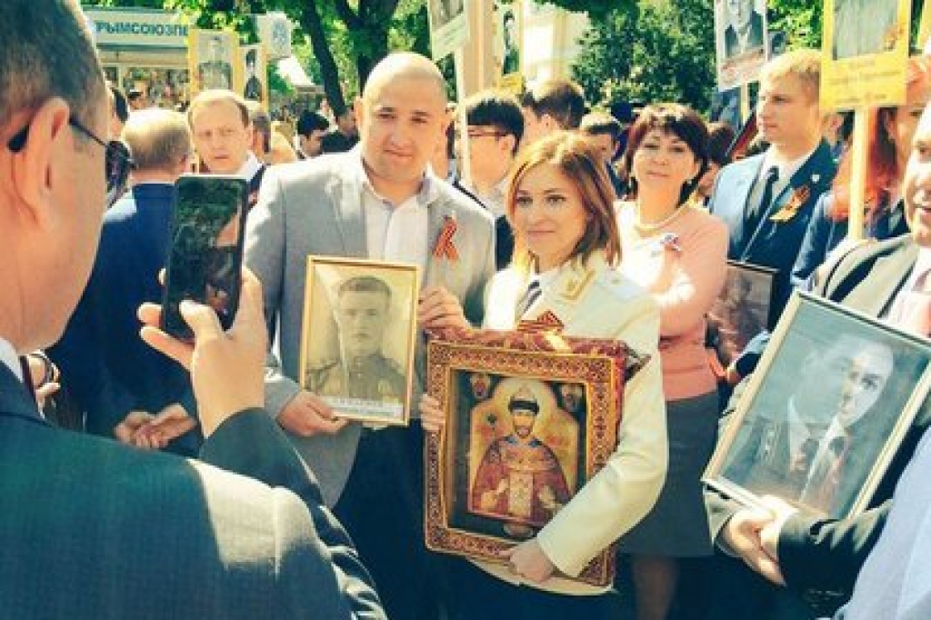 В Симферополе мероприятие собрало несколько тысяч человек, включая и первые лица полуострова. Так, известная своей «анимешной» внешностью прокурор Наталья Поклонская вышла на парад с иконой последнего российского царя Николая Второго, сообщает Лента.ру. Изображение императора ради таких целей специально привезли из Москвы.