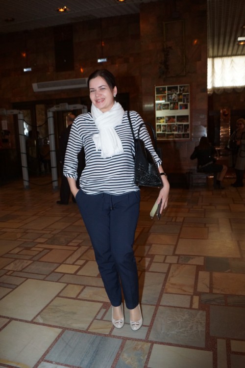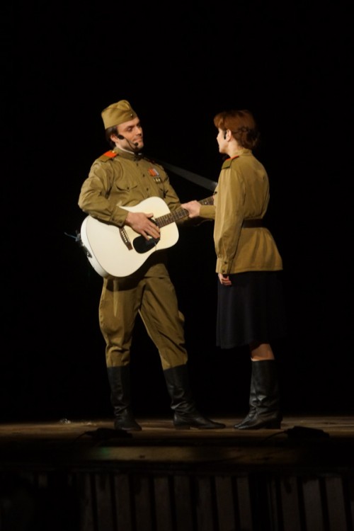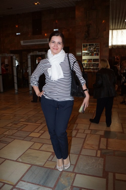 В учреждении Мельпомены директора Ротберга г-жа Вишнякова появилась облаченная в стилизованную тельняшку. В принципе, довольно теплая погода этого дня могла быть поводом для демонстрации «морского» стиля. Да и произведение, поставленное режиссером Татьяной Бобровой к 9 мая, вряд ли можно считать «классическим». В этот день под сводами Омского музыкального звучали песни знаменитого Булата Окуджавы в оркестровом исполнении.