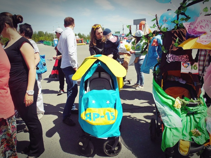 Конкурсанты явно подошли к делу со всей ответственностью. Одна из семей даже стилизовала коляску под Музыкальный театр, не забыв украсить надписью «Омску – 300 лет».
