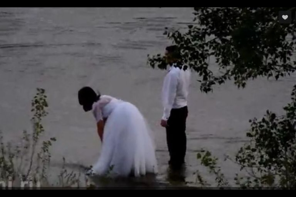 В омских пабликах сайта «ВКонтакте» активно обсуждают видео, на котором какие-то новобрачные позируют фотографу, стоя прямо в иртышской воде. При этом на невесте классическое свадебное платье, на женихе – костюм. Действие происходило вчера на набережной Тухачевского.