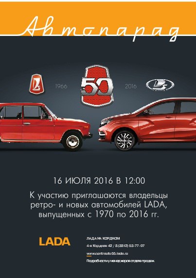 16 июля всех «ладных» владельцев и любителей приглашают на «Парад Лад». Мероприятие посвящено юбилею АвтоВАЗа – ему стукнуло 50. Чтобы принять участие в параде, нужно быть хозяином автомобиля этой марки 1966-2016 гг. выпуска.