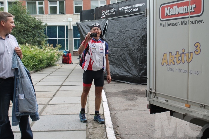 А вот спортивной подготовки ей оказалось вполне достаточно, как и ее мужу Вилфреду Мюллеру, 67 лет от роду. По его словам, тяжело ехать быстро (и тем более долго ехать быстро), а просто ехать далеко несложно. Расстояния для него не проблема, хоть он и удивляется, что в России можно проезжать сотню за сотней километров, не встретив даже деревеньки вдоль трассы.