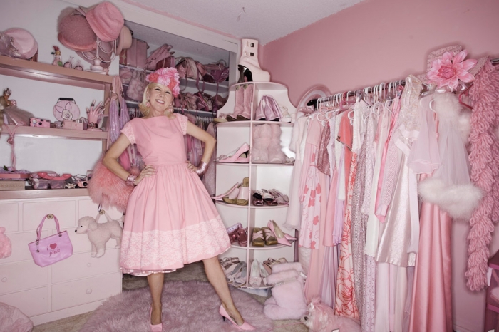 Уже три с половиной десятка лет дама появляется только в розовом. В этом же цвете оформлен ее дом. Даже свою собачку, посоветовавшись с ветеринаром, женщина покрасила в розовый.