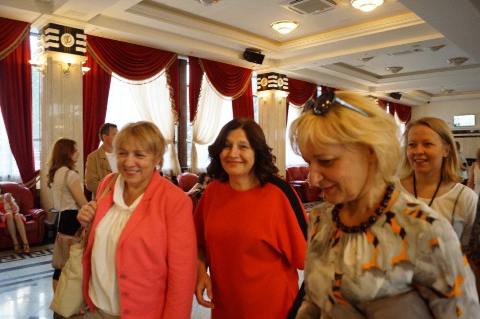 Ирина Загатова (на фото вторая слева) была в настроении. Видимо, пресс-конференция мэра прошла хорошо