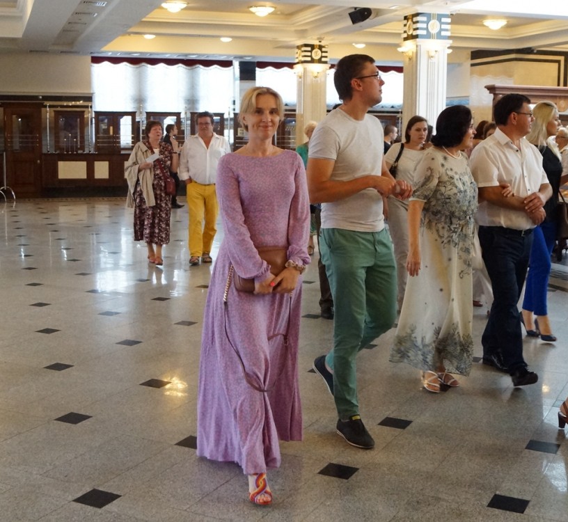 Насыщенно-синий выбрала для похода на концерт-открытие форума, где играл пианист Евгений Михайлов, супруга известного омского бизнесмена Ирина Попп.