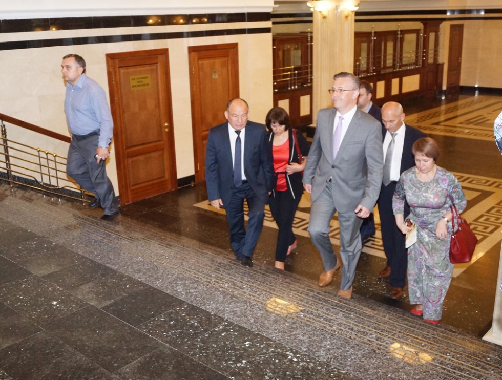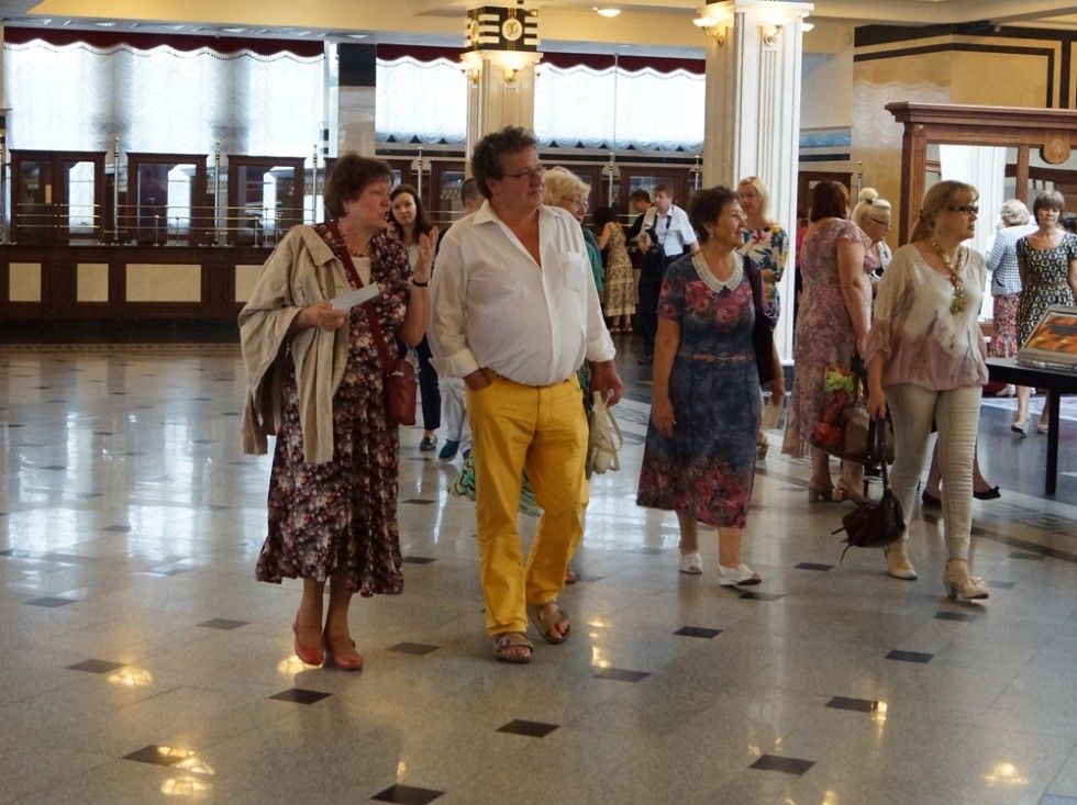 Однако и омичи не отставали в желании быть яркими. Тон алой блузкой задавала начальник Управления культуры и искусства областного Минкульта Галина Беда. На фото она, как и положено, идет позади своего босса Виктора Лапухина.