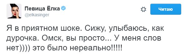 В своём микроблоге Елизавета также не забыла выразить благодарность омичам.
