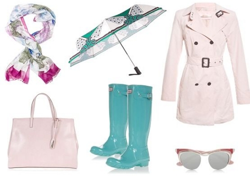 - Цвета мармешеллоу – не самый практичный вариант для сибирской осени, однако, если вы отличаетесь аккуратностью, а погода не предполагает непрекращающихся ливней при температуре, стремящейся к отметке ниже 10 градусов Цельсия, то тонкий плащ нежно-розового оттенка органично дополнят мятного цвета резиновые сапоги и яркий платок с органическим принтом. Необходимо добавить следующее - нигде не написано, что резиновые сапоги нужно носить только в слякоть. Если на улице прохладно, но сухо и солнечно- вы можете надеть их, дополнив комплект солнечными очками из пастельной гаммы, - такой осенний лук также имеет право на существование.