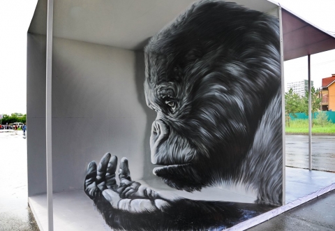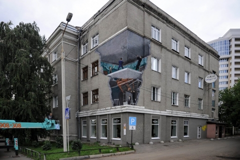 А еще в центре Омска екатеринбургский художник Андрей Топоров «откусил» кусок стены от здания Музыкального училища имени В.Я. Шебалина.