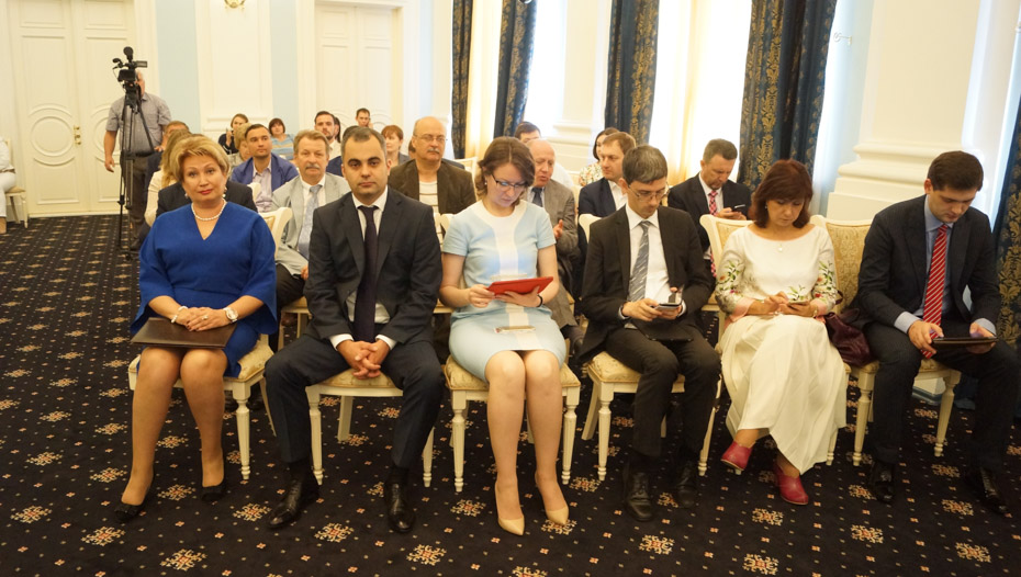 В шикарном платье насыщенно синего цвета первая леди омской власти была в Законодательном Собрании на награждении лауреатов конкурса, проводившегося в рамках Дней Москвы в Омске.