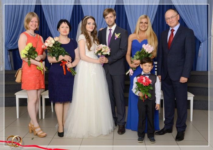 На бракосочетании присутствовали родственники обоих молодожёнов, в том числе гендиректор завода по производству майонеза Валерий Попп и мама жениха, бывшая телеведущая Ирина Попп.