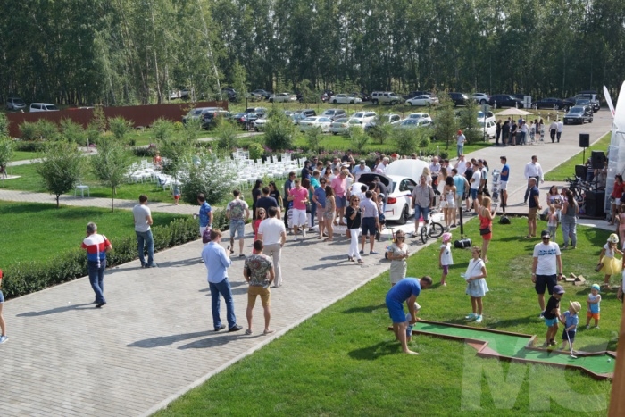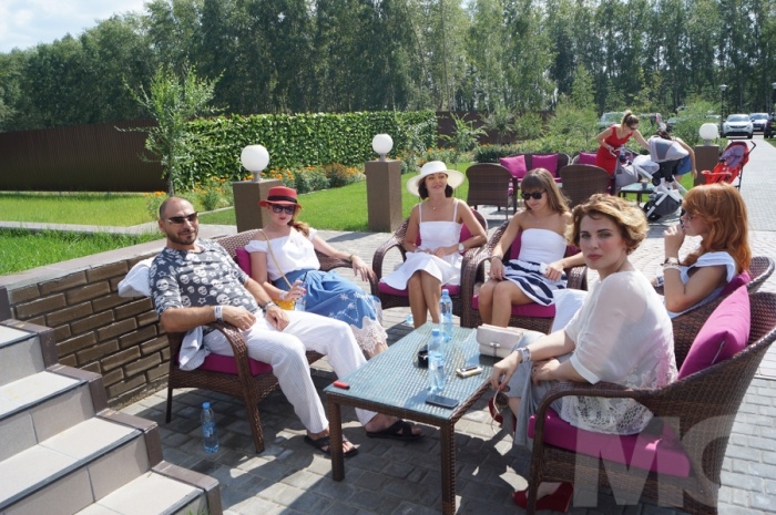 Отдыхающие мирно прогуливались, созерцая отличные пейзажи, оценивали мягкость газона и угощались вкусными закусками и напитками.