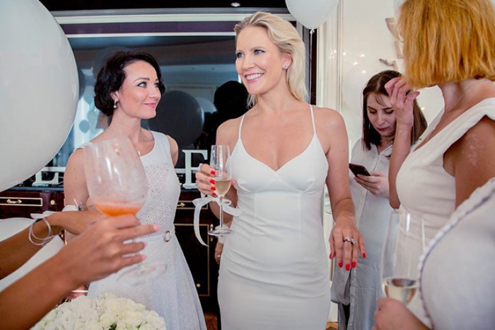 На прощании с незамужней жизнью 37-летняя Елена и её гостьи блистали в белых нарядах. Этот же цвет был основным в оформлении праздника, который прошёл в шикарном отеле.