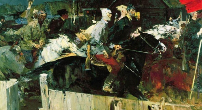 На картинах Евсея Моисеенко можно увидеть сцены Гражданской и Великой отечественной войн. Эта тема всегда была для него важной. Но также он писал лиричные, эмоциональные пейзажи. Можно увидеть среди его работ и портреты близких.