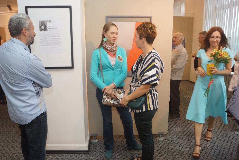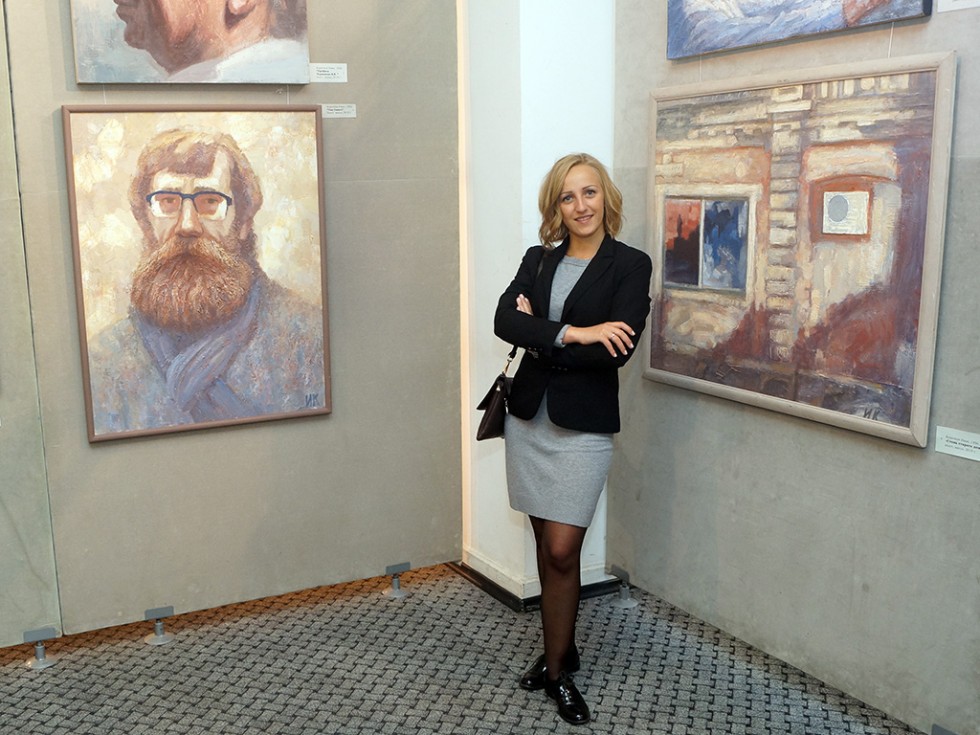 Прекрасная любительница изобразительного искусства на фоне полотен художника Ивана Короткова, отметившего свой юбилей вместе с праздником Ольги Кошелевой