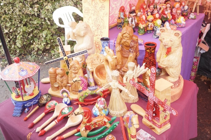 Есть тут расписные подносы и шкатулки; одежда и аксессуары, свалянные из шерсти; народные и авторские игрушки из дерева, ткани, соломы, рогоза.