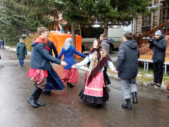 Погода в день открытия Покровской ярмарки посетителей не баловала, падал снежок. Молодежь из фольклорных коллективов решила согреться танцами.