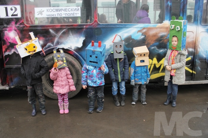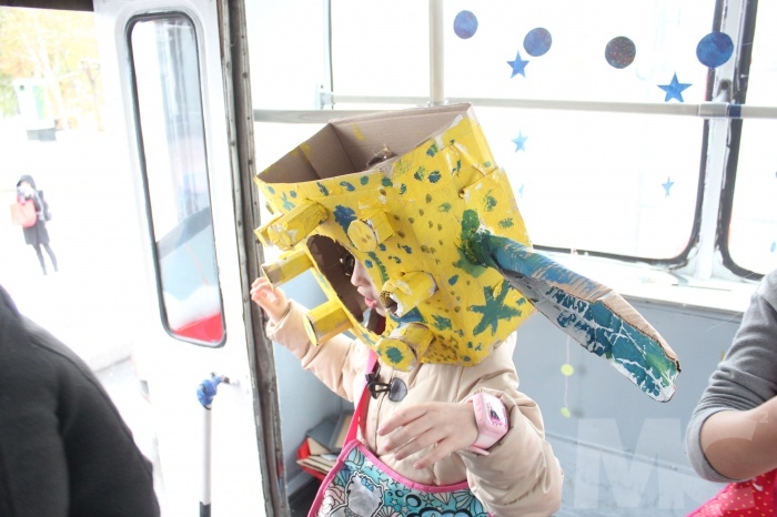 Культурная программа в троллейбусе, припаркованном у Драмтеатра, началась с семейных мероприятий: омичи привели своих детей на мастер-класс от художницы Лизы Штанг по созданию космических масок из картона. Под руководством мастера маленькие омичи кропотливо трудились над масками около двух часов: вырезали и склеивали основу, а затем раскрашивали свои детища. После этого для маленьких омичей провели коллективную фотосессию у расписного борта троллейбуса.