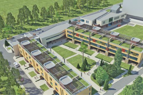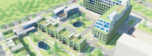 - два здания блока обслуживания (включающие магазины товаров первой необходимости, тренажерный зал, детский сад, теннисные корты, спа-комплекс, аптеку, медпункт, кафе и другие услуги, создающие условия для комфортного проживания по типу «все включено»);