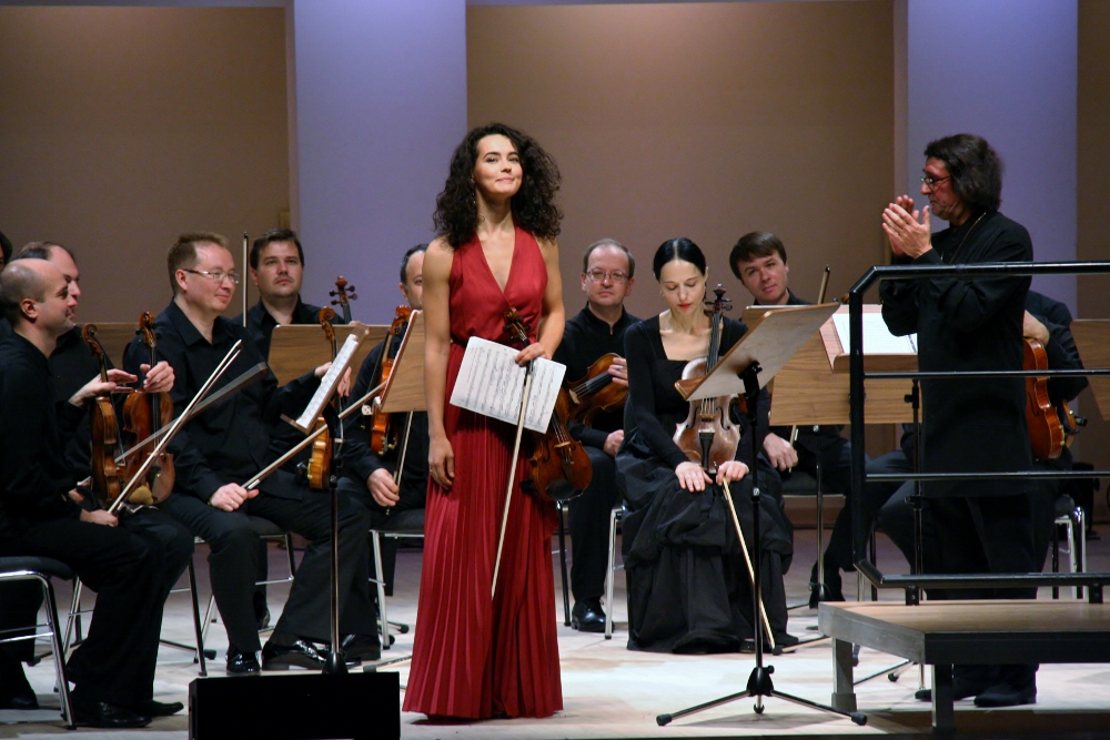 Башмет без всяких скидок на провинциальность аудитории начал с серьезного. 35 минут звучало сочинение Арнольда Шенберга «Просветленная ночь». «Солисты Москвы» были виртуозны, но публика, пришедшая после работы, немного подустала, и явно напрашивался перерыв. Однако его не последовало. На сцену вышла красавица, скрипачка-звезда Алена Баева, исполнившая вместе с москвичами Концерт Мендельсона.