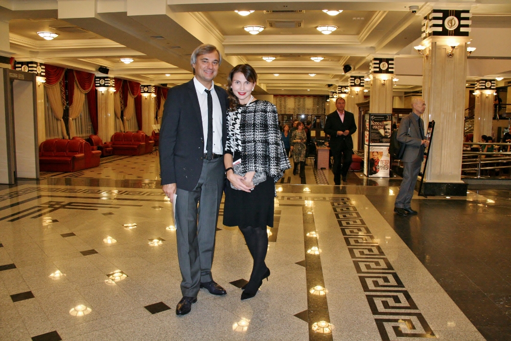 Пока г-н Курцаев, отдавший предпочтение в этот вечер стилю «кэжуал», фланировал по фойе концертного зала, глава Омского Сбербанка Игорь Меркулов у входа в Концертный зал вызванивал свою спутницу. Она появилась в платье леопардовой расцветки.