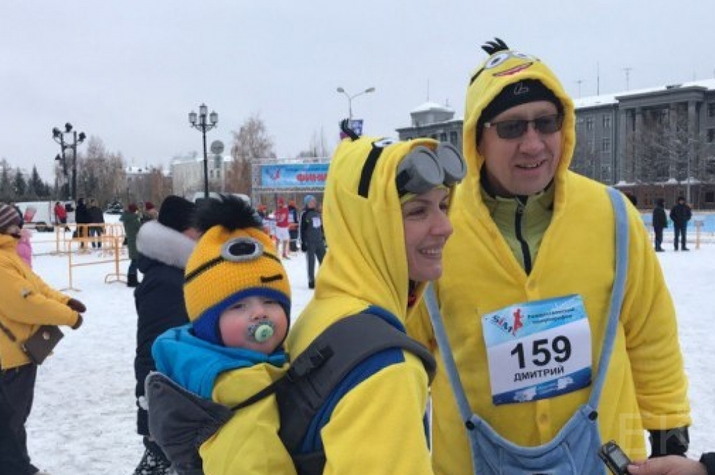 Предприниматель пробежал дистанцию в 21 км, а его супруга – 7 км. Все трое нарядились в костюмы миньонов. Напомним, что ряженым участникам полумарафона предусмотрены отдельные призы.