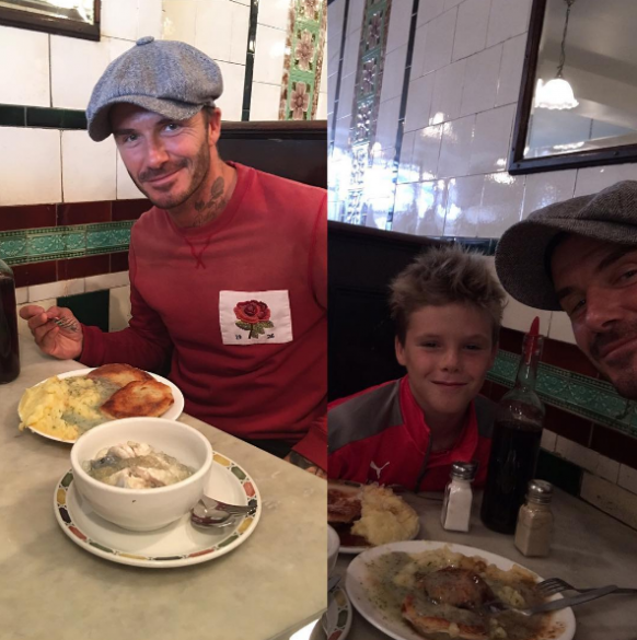 Речь идет вот об этой фотографии, которую футболист опубликовал в сети. Судя по всему, Дэвид решил плотно пообедать. Его тарелка до краев полна едой – картофельное пюре и пирог с подливкой, а также заливной угорь.