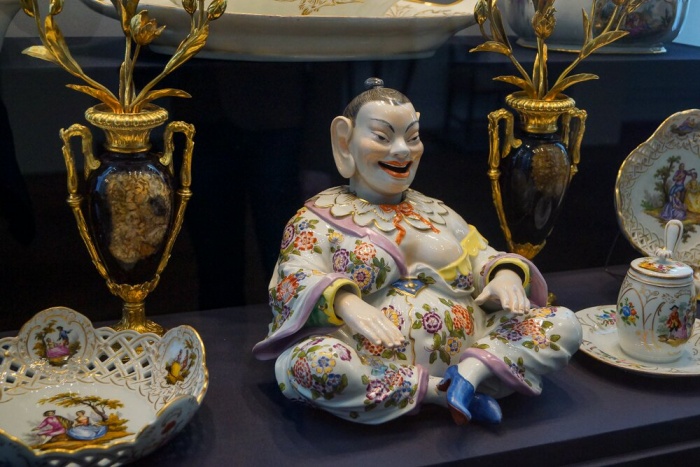 А в соседней витрине среди предметов сервиза сидит фарфоровый китайский болванчик. Руки, ноги, голова и даже язык во рту у этой статуэтки подвижны. На взгляд европейца, это просто экзотическая вещица, а вот у себя на родине такая фигурка служила сейсмографом. При подземных толчках болванчик начинал качаться, а когда они усиливались, то фарфоровый язык бился о зубы и подавал уже звуковые сигналы.