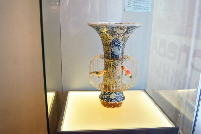 Даже когда ее в 2000-е годы склеили, показывать мы ее не могли, так как у нее утрачена часть декора. Нужно было провести вот эту реконструкцию – сделать заново клетку, поместить в нее птичек, чтобы она вернулась к первоначальному замыслу автора».