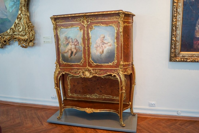 В этом же зале расположен отреставрированный мебельный гарнитур работы братьев Гамбс. Экскурсоводы подробно рассказывают здесь о профессии музейного реставратора.