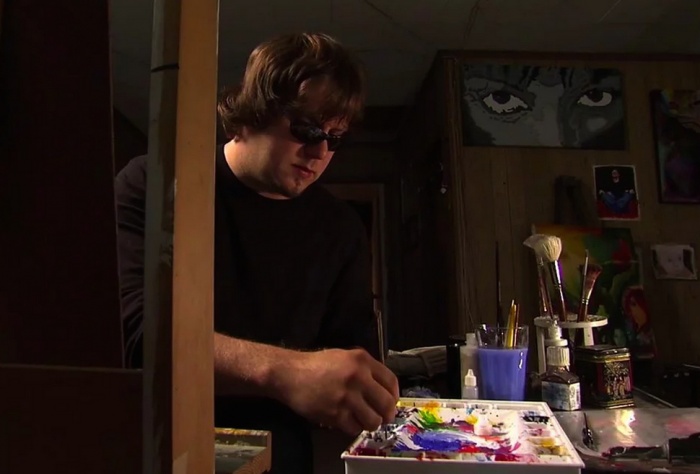 Незрячий художник использует особые текстурные краски – они оставляют на холсте выпуклый след. Это позволяет Джону чувствовать границы цветов и делить полотно на участки.