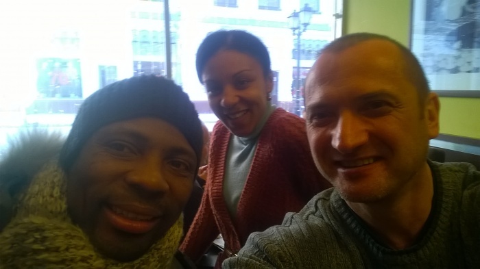 При этом выступление прошло прямо на Красной площади, в 20-градусный мороз. Вторая композиция, исполненная группой «Синатра Бэнд», уже собственного сочинения, рассказывала историю студента, который приехал в Москву, но мечтает вернуться в Африку. А под занавес программы Андрей передал привет родному Омску.
