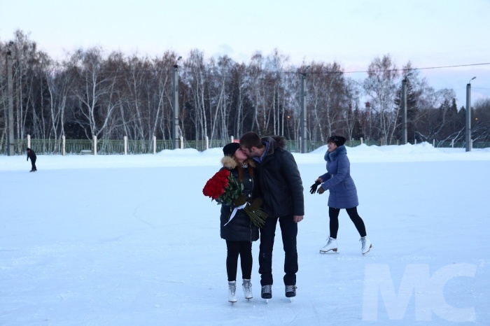 При всем многообразии вариантов которые только можно вообразить, обдумывая как провести День святого Валентина со своим близким человеком, некоторые омичи оказались оригинальны. Этому же способствовало приглашение от администрации спорткомплекса «Юность». В честь праздника все пришедшие пары могли арендовать две пары коньков по цене одной.