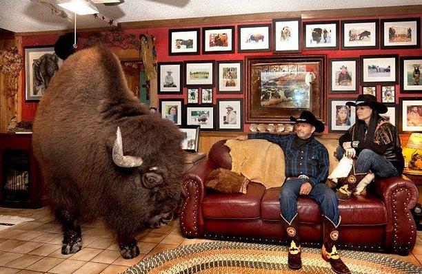 Как пишет Life, когда-то у Ронни Бриджиса было стадо из 52 бизонов, но 13 лет назад из-за проблем со здоровьем мужчине пришлось их продать. Ронни и его жена Шеррон оставили себе одного бычка по кличке Дикая Штучка.