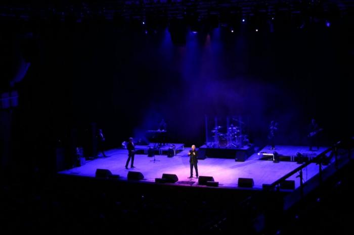 «Хор...» вышел на сцену, украшенную черным задником, с минимумом света и четырьмя музыкантами в качестве сопровождения. Довольно скромные музыкальные партитуры больше соответствовали ресторанному имиджу артистов, нежели бомонду шоу-бизнеса, каковыми себя представляют участники коллектива Михаила Турецкого.