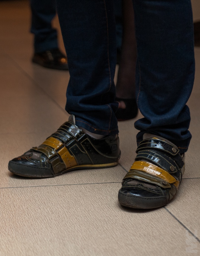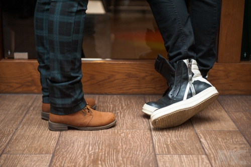 Фотокор «МС2» не мог пройти мимо двух молодых людей в такой стильной обуви. Кеды без шнурков на массивной подошве и рыжие ботинки в сочетании с клетчатыми брюками, что еще нужно, чтобы провести модный вечер комфортно.
