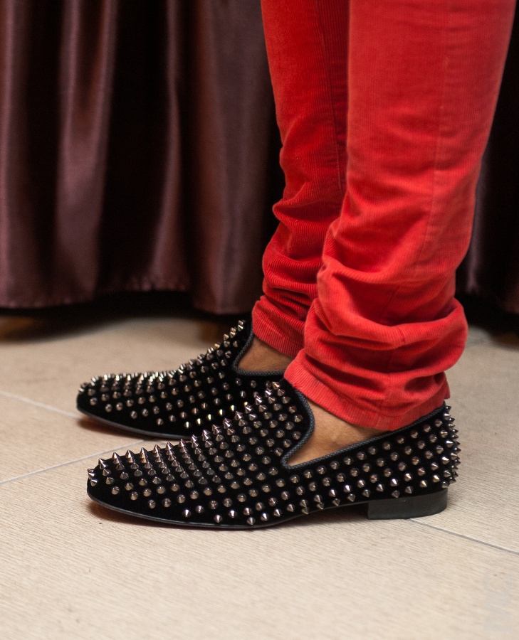 Сам Александр Рогов надел на презентацию слиперы Christian Louboutin с шипами.