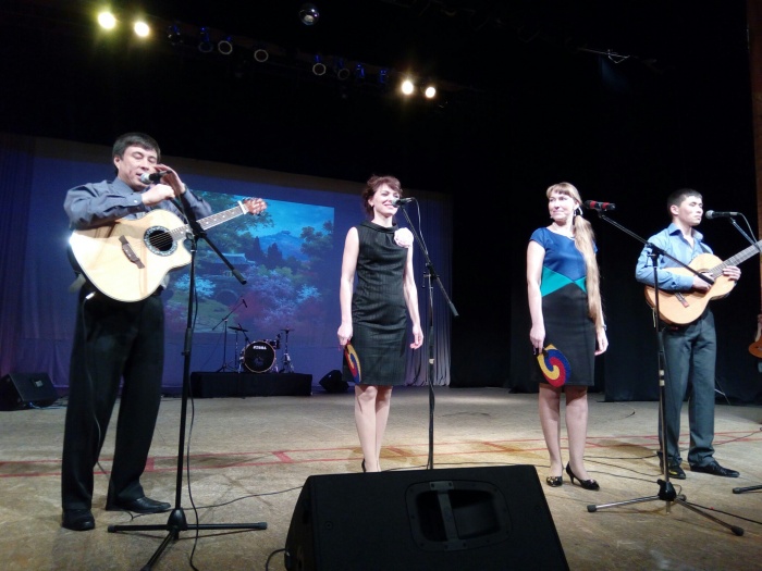 Давние друзья Василий Кан и Юрий Ким спели на концерте вместе со своими женами Оксаной и Ириной, представившись квартетом «Дружба народов». Первую песню, кстати, внесенную в список Всемирного наследия ЮНЕСКО, они спели на корейском языке, вторую – на русском, это была композиция «Я, побывавший там».
