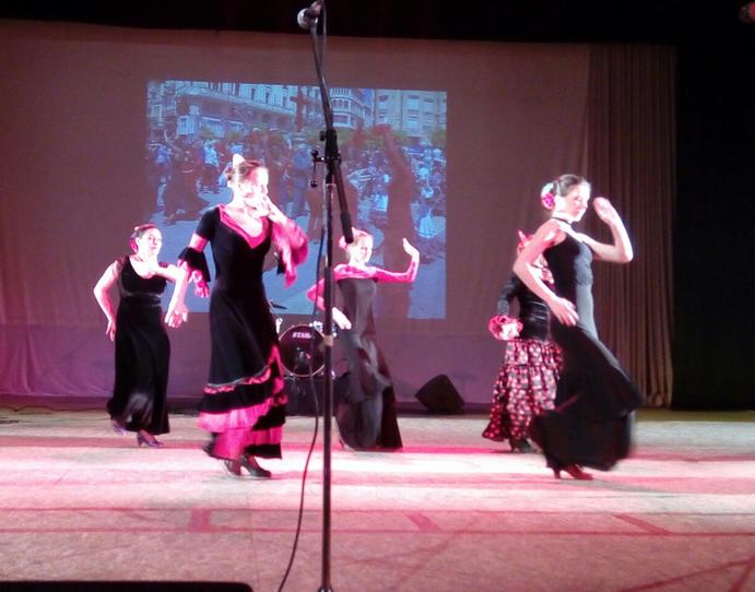 Испанскую тему поддержали танцовщицы студии «Галианта». Они исполнили зажигательный танец фламенко.