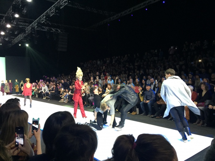 После финального выхода и построения всех моделей, владелица сети франшиз студий маникюра Лены Лениной вывела за руку из-за кулис дизайнера дефиле Екатерину Романову на финальный поклон публики. Пока они шли по подиуму к месту скопления фотографов и видеокамер, Ленина приглашала своих звездных товарищей присоединиться к ним для фотографирования: Стаса Садальского, Марию Арбатову, Веру Сотникову, Костю Цзю, Прохора Шаляпина, Рустама Солнцева, Бари Алибасова и Вилли Токарева.