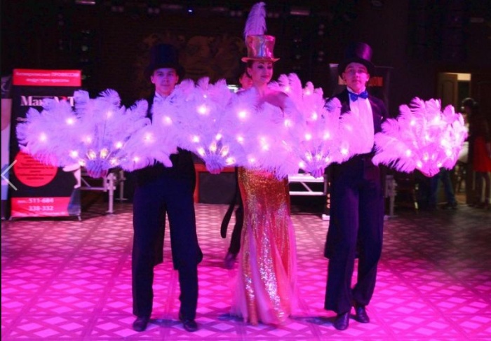 Диана Самситдинова с факультета иностранных языков показала оригинальный творческий номер с веерами из перьев.