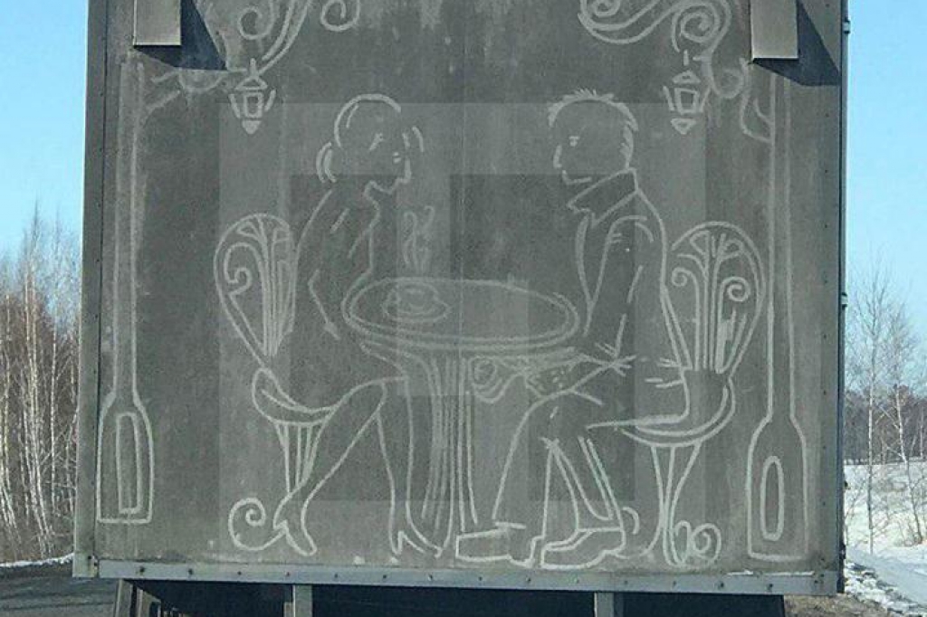 Еще в октябре прошлого года, сообщает Life, молодой человек по имени Евгений и его возлюбленная, имя которой неизвестно, вместе создали рисунок на грязной поверхности кузова машины. Он изображает пару – девушку и мужчину, сидящих за столиком в кафе.