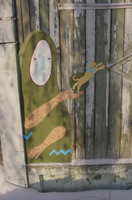 Кроме ниндзя, граффитисты населяют город и другими удивительными существами. Вот, например, Дух зеленого забора и его друг Маленький лев, который любит прыгать по ромбам.