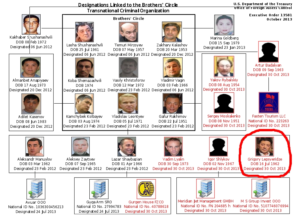 О введении финансовых санкций сообщил Минфин США на сайте ведомства. Среди предполагаемых членов преступной группировки «Братский круг» был назван и российский певец Григорий Лепс. В сообщении Минфина США указано, что человек по имени Григорий Викторович Лепсверидзе, родившийся 16 июля 1962 года в российском городе Сочи, известен также как «Григорий Лепс» - «Гриша» и живет на таиландском острове Пхукет, где он недавно купил дом. По данным американского Минфина, Лепсверидзе якобы «перевозит деньги для Владислава Леонтьева», включенного в санкционный список еще в феврале 2012 года.